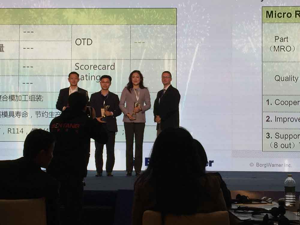 2017年12月12日,博格華納摩斯系統(tǒng)中國(guó)召開(kāi)2017年供應(yīng)商大會(huì),會(huì)上泉峰汽車(chē)憑借其在解決方案、快速反應(yīng)、及時(shí)交付等方面的優(yōu)異表現(xiàn),繼2015年度之后,再次榮獲了博格華納頒發(fā)的“最佳合作獎(jiǎng)”。